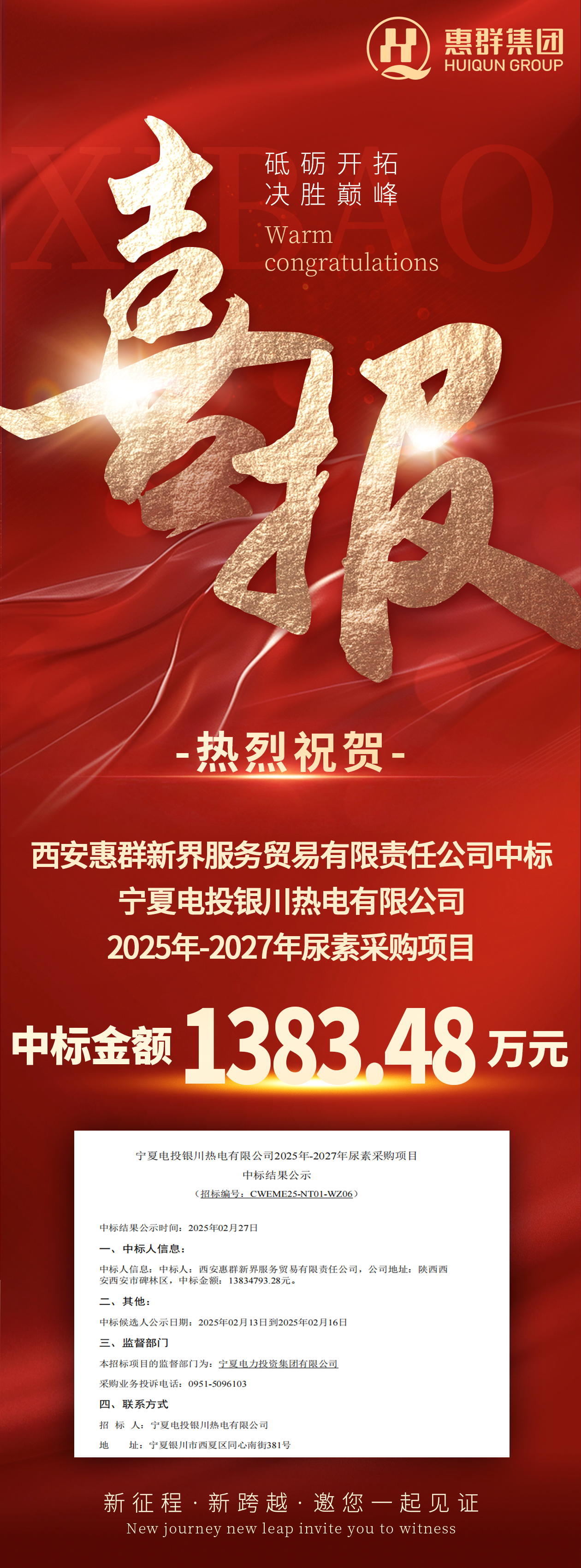 喜報(bào)連連!服貿(mào)公司憑借專(zhuān)業(yè)實(shí)力與熱忱服務(wù),在激烈競(jìng)爭(zhēng)中脫穎而出,成功中標(biāo)項(xiàng)目!長(zhǎng)久以來(lái),公司堅(jiān)持專(zhuān)業(yè)核心驅(qū)動(dòng),以服務(wù)為橋,為客戶(hù)提供優(yōu)質(zhì)貿(mào)易解決方案。此次中標(biāo),彰顯市場(chǎng)對(duì)公司的信賴(lài)與服務(wù)理念的認(rèn)可。展望未來(lái),服貿(mào)公司將持續(xù)轉(zhuǎn)化競(jìng)爭(zhēng)優(yōu)勢(shì)為客戶(hù)信任,攜手合作伙伴,開(kāi)啟合作共贏新篇章!